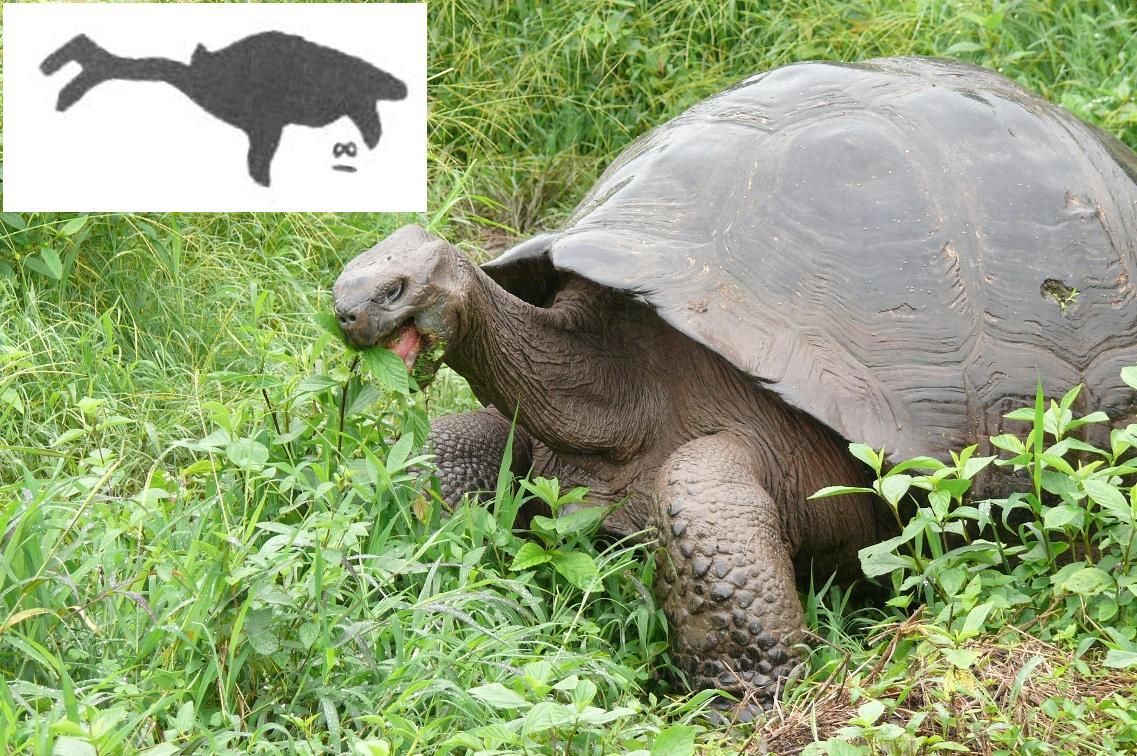 Рис.4 Наскальный рисунок из урочища Калмагабель и гигантская черепаха с Галапагосских островов.