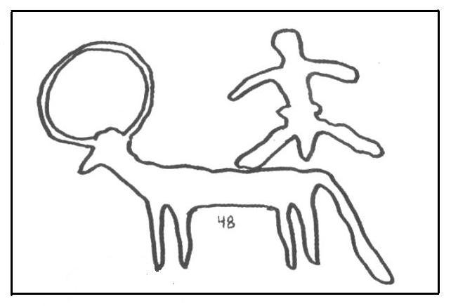Наскальные рисунки, изображающие укрощение коня или коня в поводу.