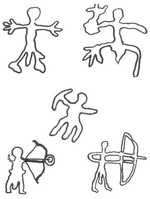 Таких наскальных рисунков в книге представлено действительно достаточно много. Подобные петроглифы распространены также и в Восточном Казахстане.
